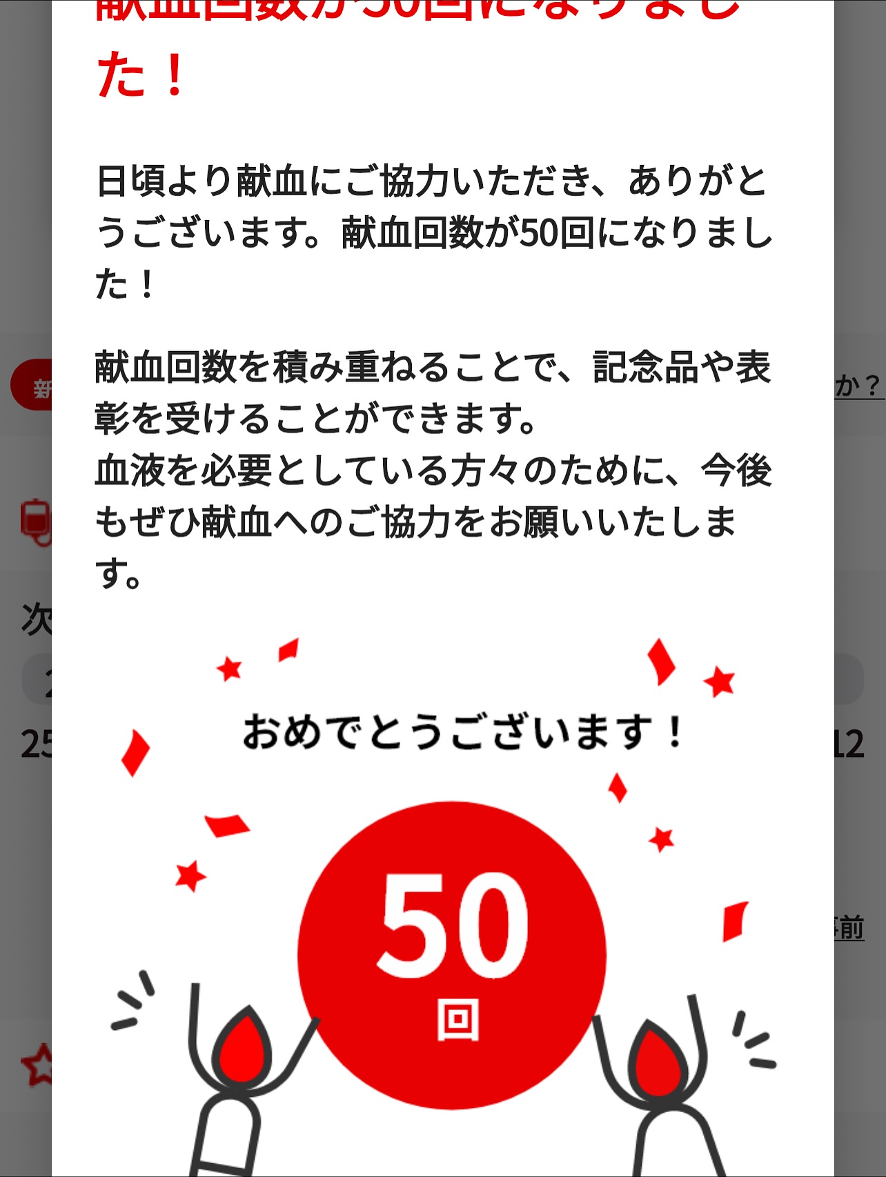 もう一つの目標、「47歳までに献血50回」も一昨日に達成しました!