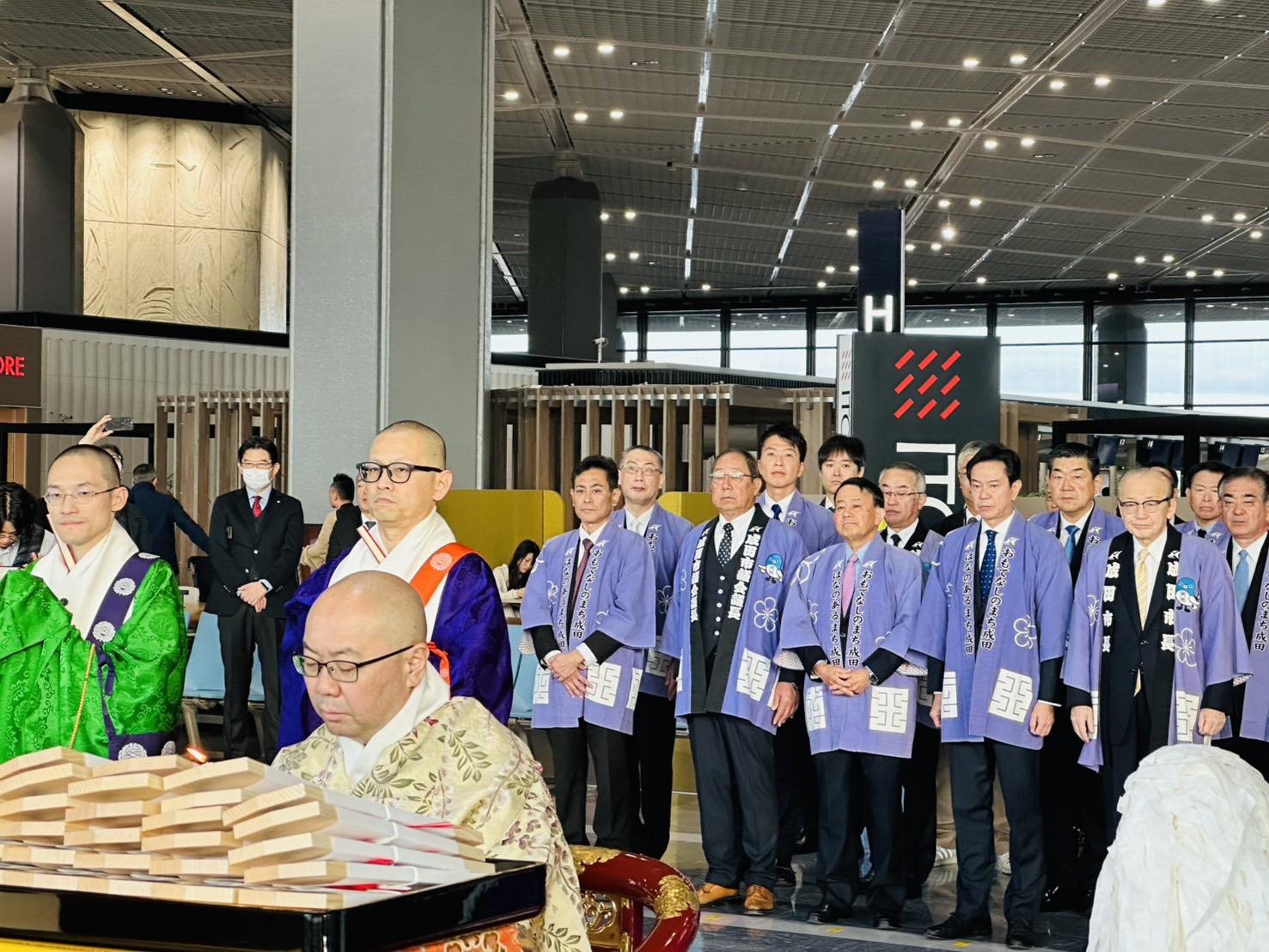 成田山新勝寺の導師・職衆による法楽のもと、航空機の安全、空港利用者の皆さまの無事、そして国際交流の発展が祈願されました。