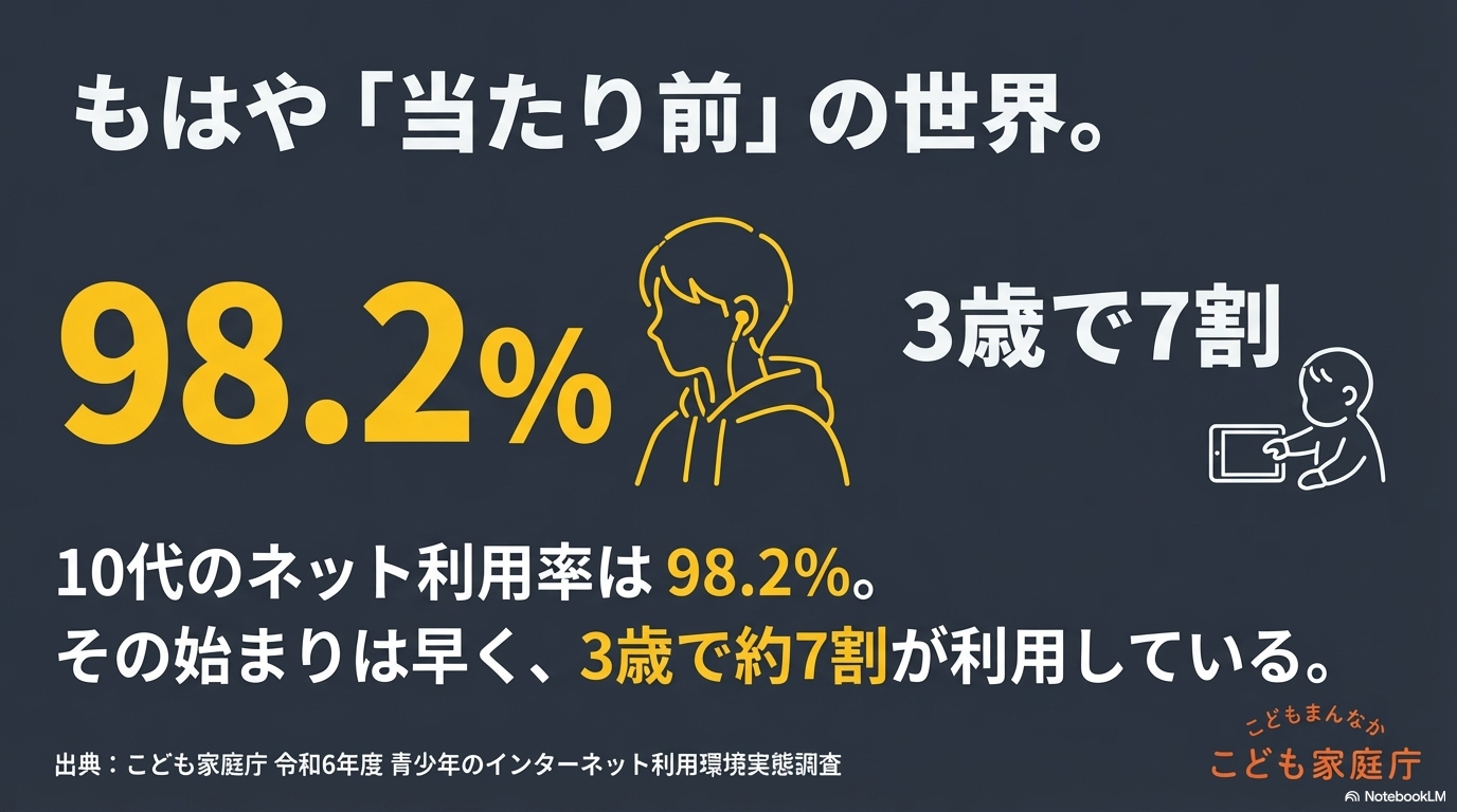 その始まりは早く、3歳で約7割がインターネットを利用しています。