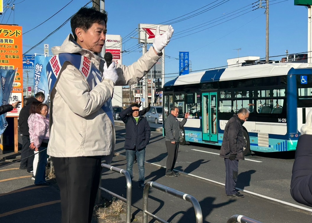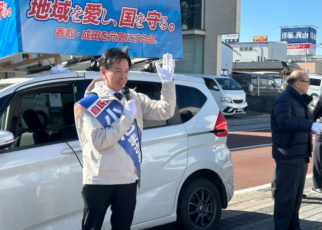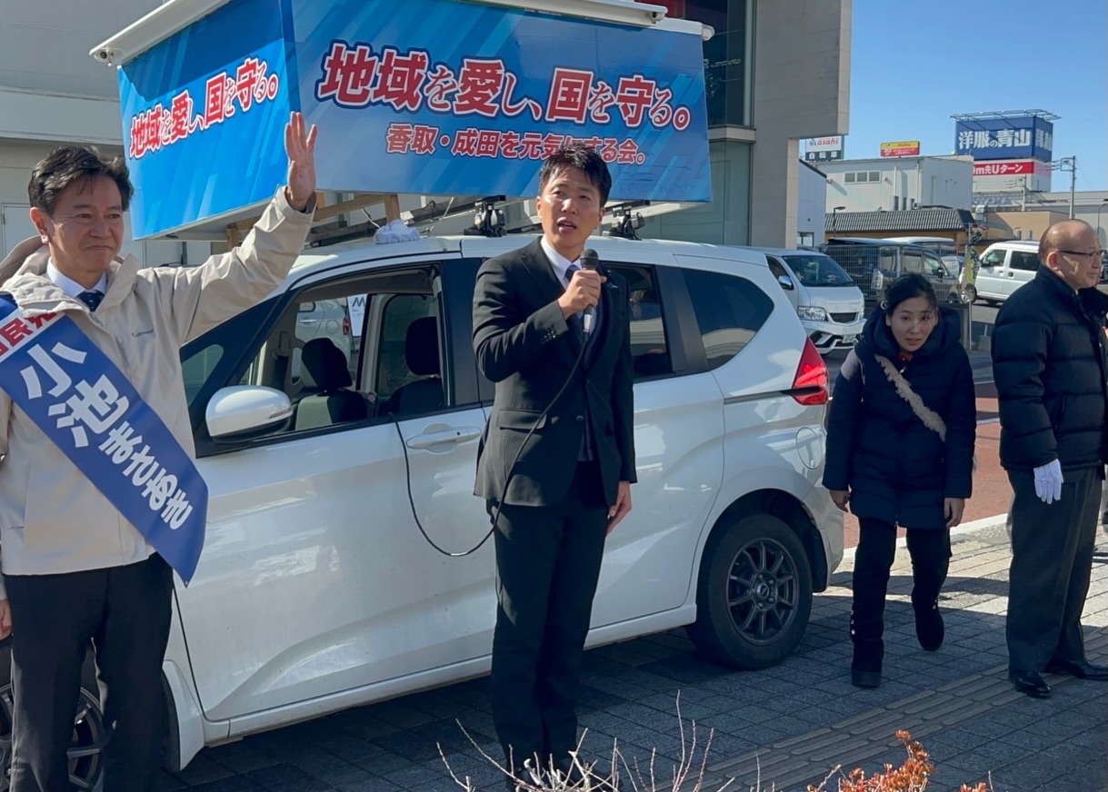 その後も、11:30 イオンモール土屋、12:30 公津の杜タイヤ館前で街頭演説。