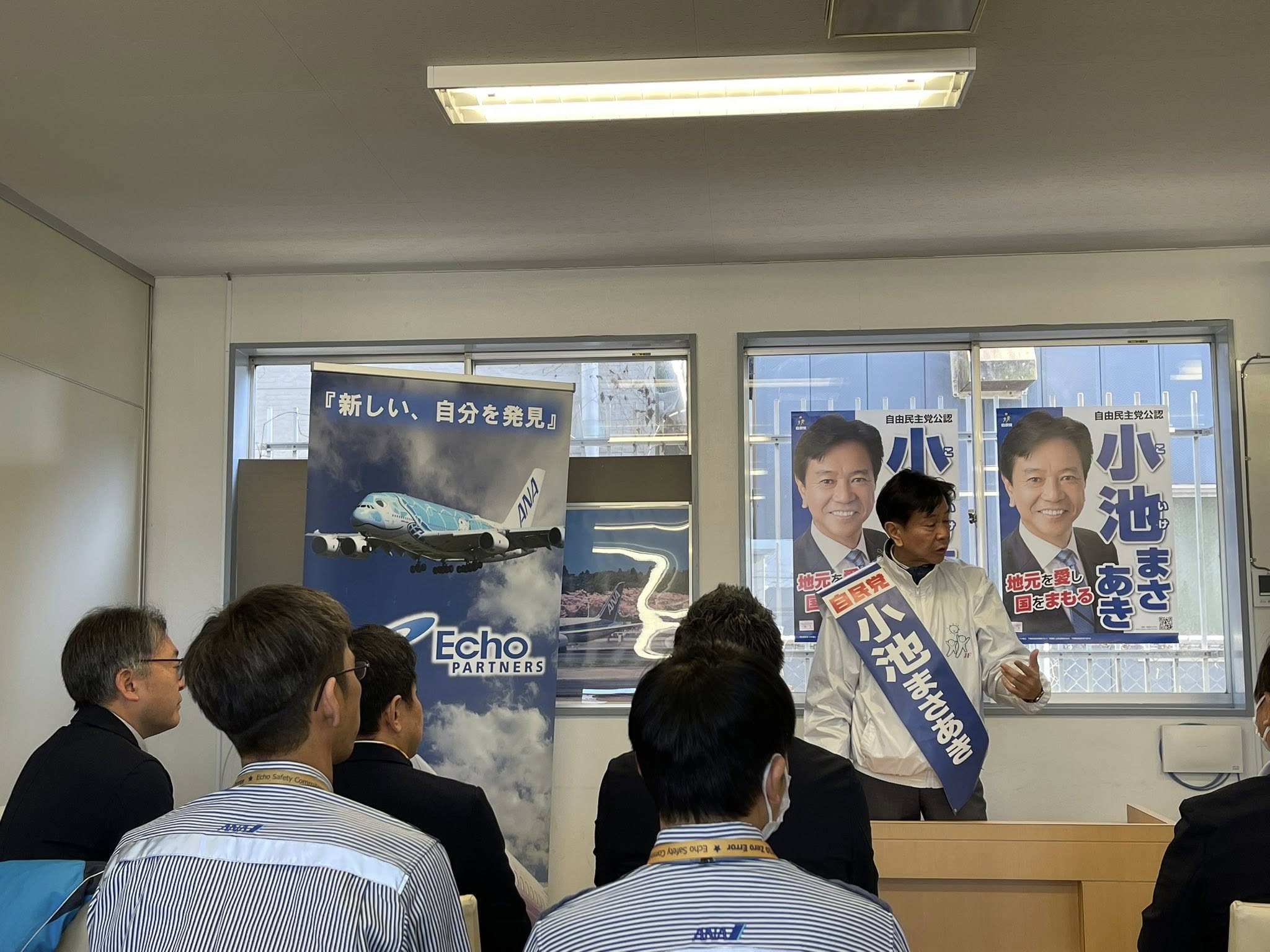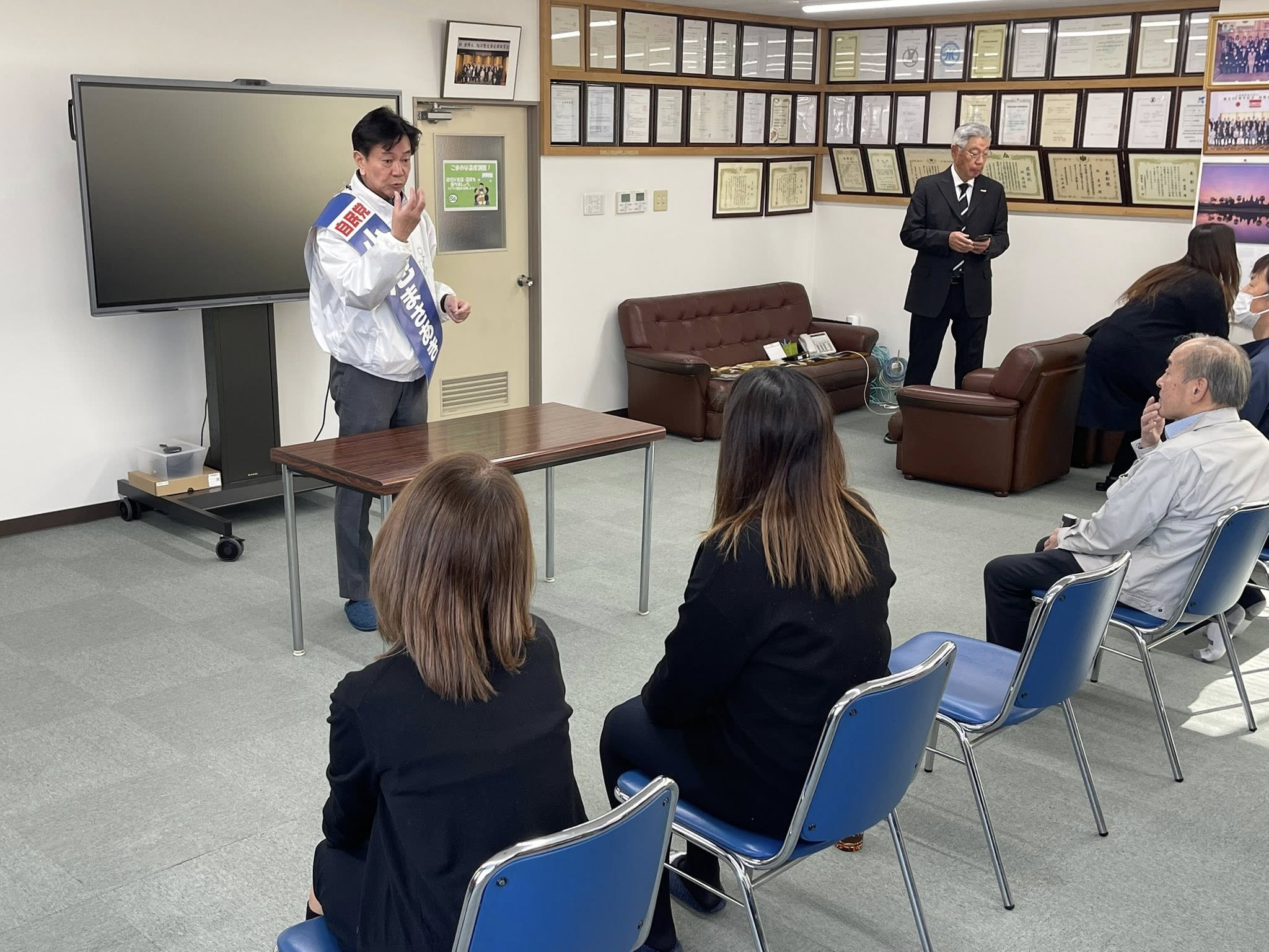 市内事業者の皆さまを訪問し、朝礼などの場で小池正昭候補がご挨拶をさせていただきました。
