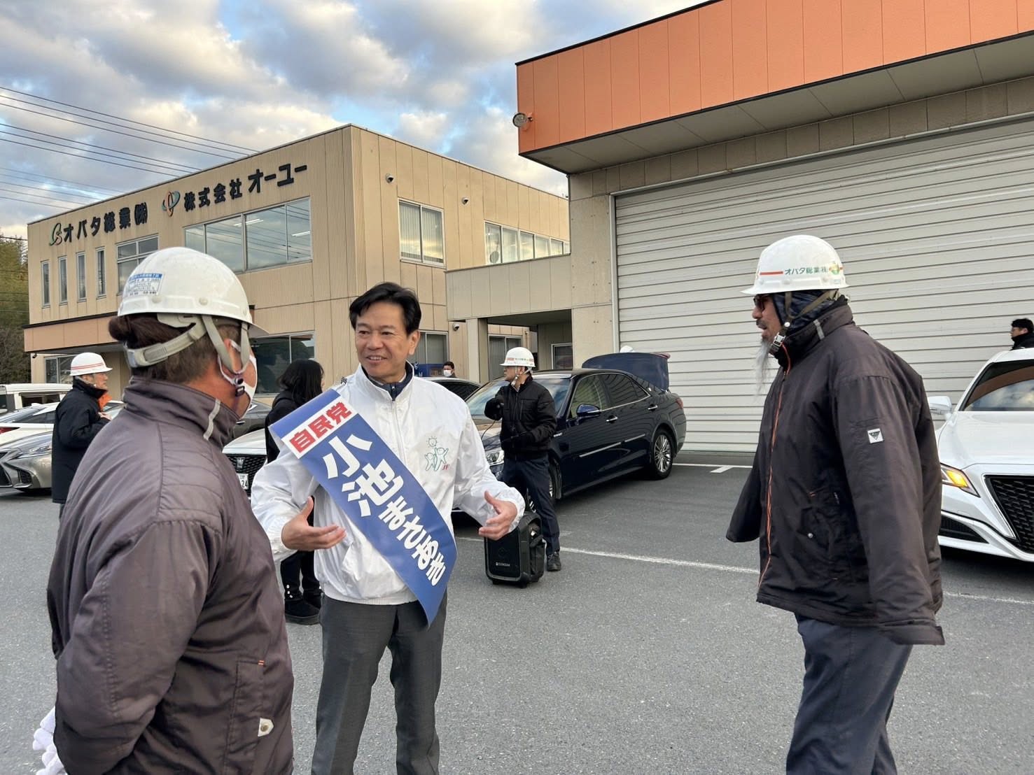 市内事業者の皆さまを訪問し、朝礼などの場で小池正昭候補がご挨拶をさせていただきました。
