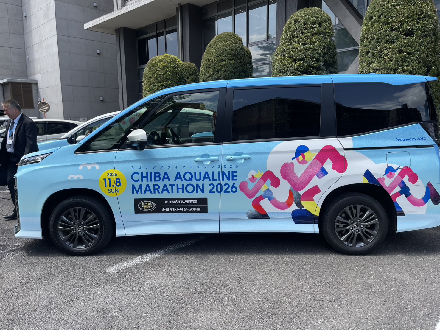 2026年11月に開催される「ちばアクアラインマラソン」をPRするラッピングカーが、議会棟の駐車場でお披露目されていました。アクアラインマラソンのラッピングカーは、大会に向けた機運醸成のため、協賛企業から提供されたということです。